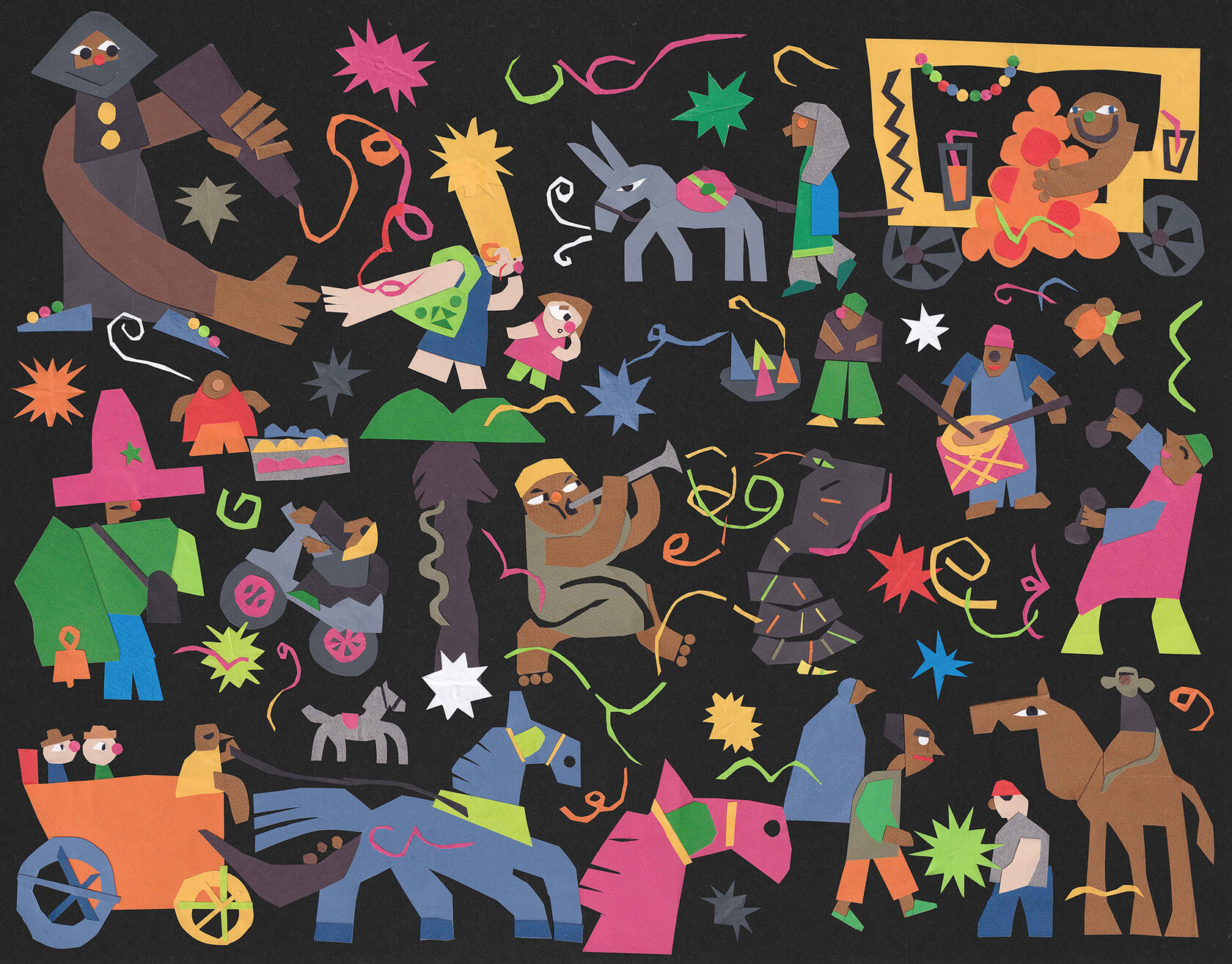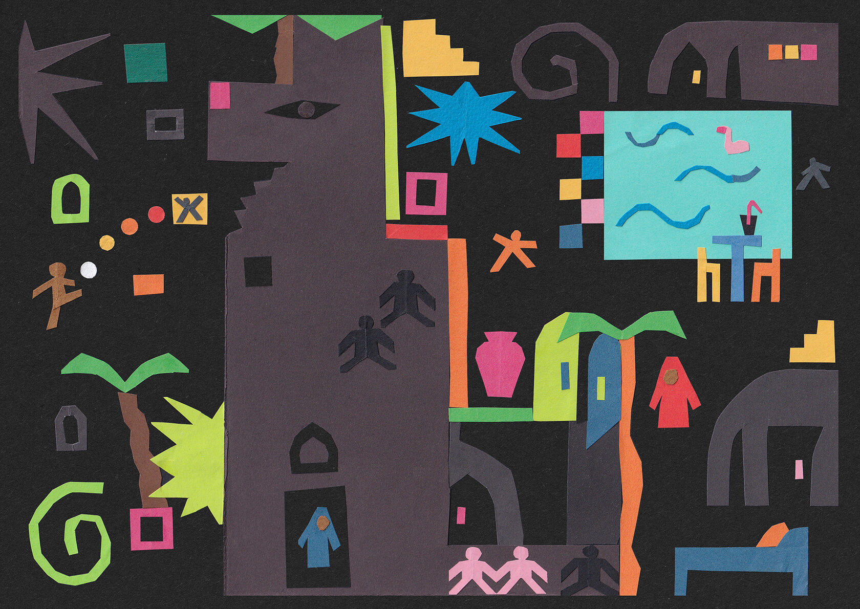 The illustrations are created using the technique of paper collage and depict my most profound impressions from the journey.